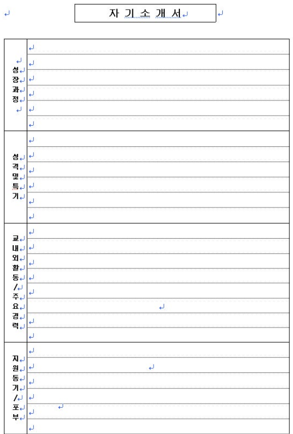템플릿 활용: 반복되는 자기소개서 작성 시 동일 양식 유지 → 시간 절약